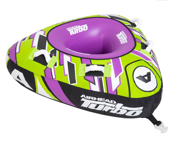 If you’re looking for a tube designed for speed, look no further than the Airhead Turbo Blast tube. This 1 person towable tube features an aerodynamic shape that slices through wake while riders sit back and enjoy the ride.