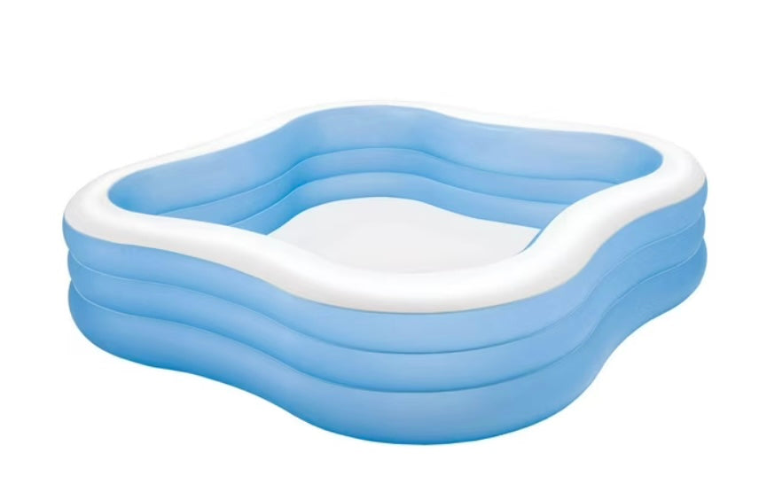 Make a splash this summer while playing in the Intex Beach Wave Swim Center™ Family Pool! The unique square shape allows for maximum play room and the wide sidewalls give extra comfort and stability. The wave shape makes this pool fun and interesting for all.
