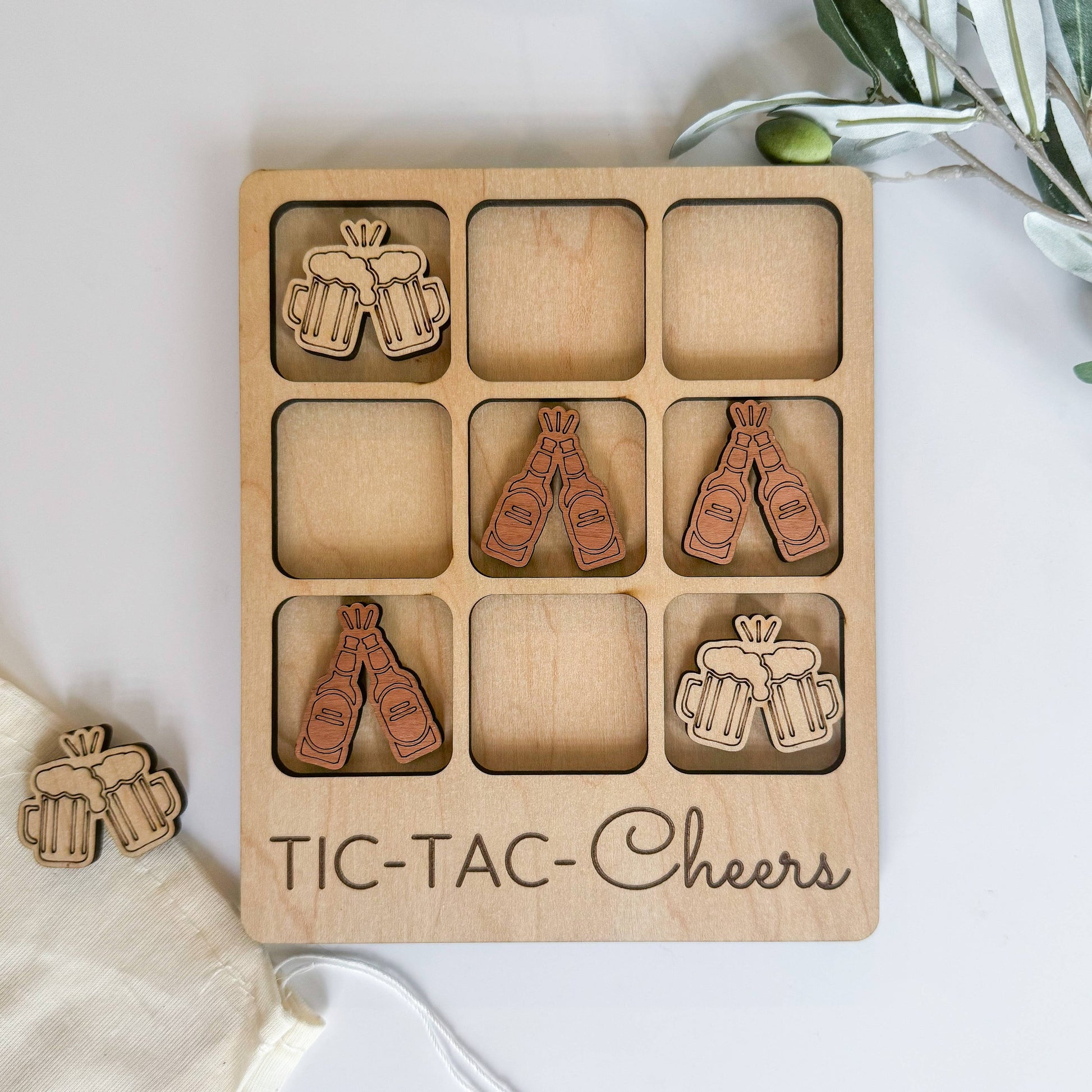 Introducing the Cheers Tic-Tac-Toe Game Set, a spirited celebration of beer culture, perfect for breweries, pubs, and beer enthusiasts. This portable game set captures the essence of good times and camaraderie over a cold brew, making it an ideal addition to beer gardens, taprooms, or home bars. Whether enjoyed during happy hour, beer festivals, or backyard gatherings, this tic-tac-toe board adds a touch of fun to any beer-centric occasion.