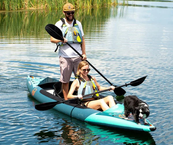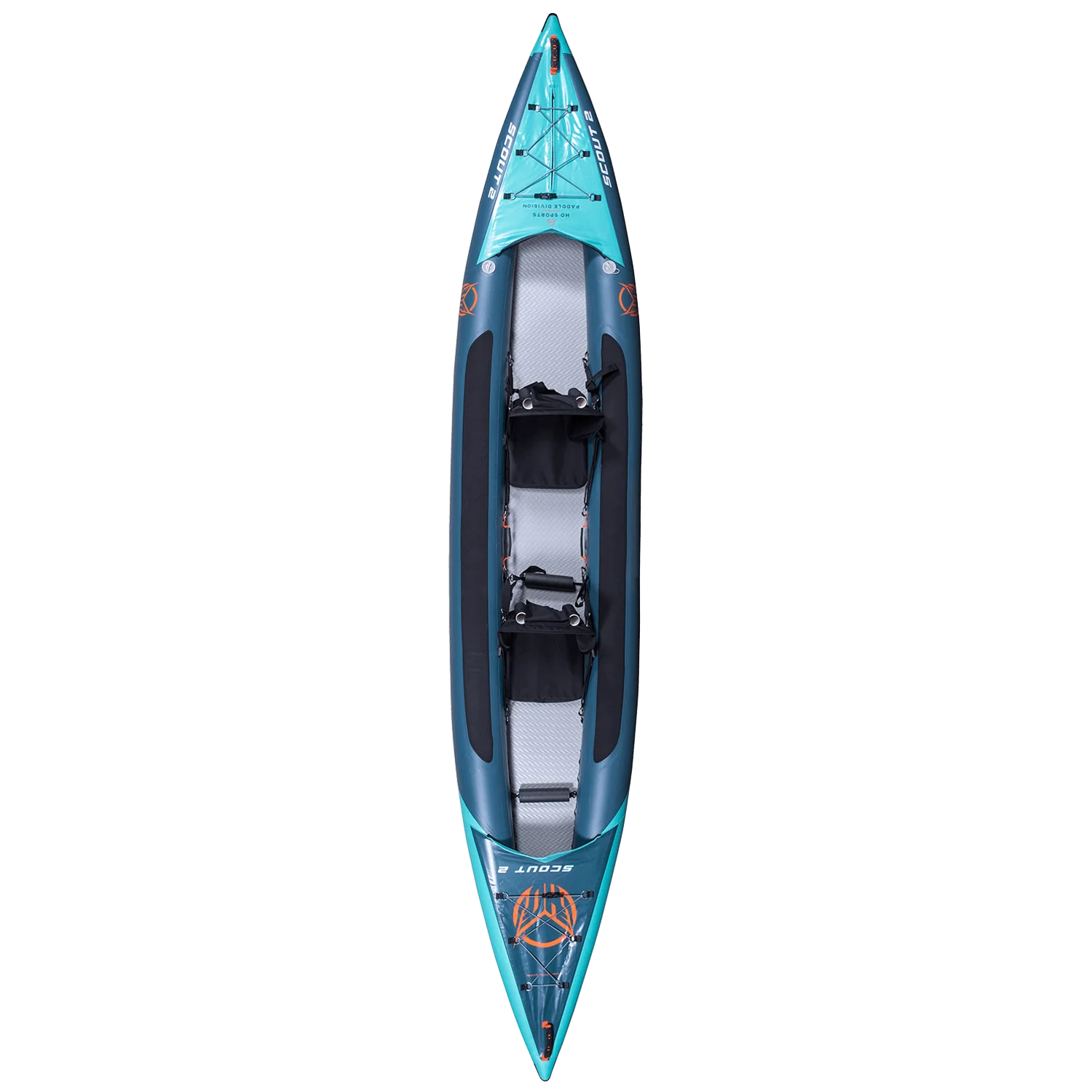The Scout 2 is fully inflatable, making it super compact for simple storage and transport. The Scout's 3 inflation chambers make inflation/deflation a snap while the rigid drop-stitch floor won't bend or fold like some inflatable kayaks. With 2 bungee storage zones and an open top design, you will have ample room for all your gear. The Scout comes with an Atlas adjustable 2-piece paddle, an ergonomic high-back seat with storage pocket, built-in fishing rod holders, a hand pump, and backpack.