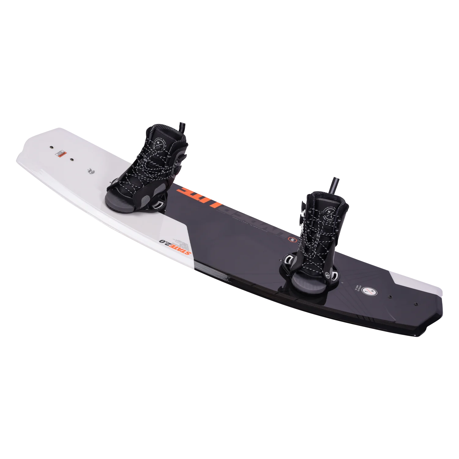 The goal behind the State 2.0 is creating a shape to take riders' skills to the next level was . We found that creating a shorter but more effective edge on a rider's toe-side made hard to learn wake jumps a lot easier. This is because there is less rail to initiate when applying toe-side pressure. Once set, the smoother toe-side transition is then held by the State 2.0's thinner profile molded-in fins, creating less drag and a better release off the top of the wake. Subtle Molded-In Toe-Side Footbed Risers were also added to help a rider create more leverage when pressure is applied. The longer, more traditional heel-side edge compliments this asymmetrical design by allowing the natural body position of a rider to generate stability and speed into the wake without a loss of pop due to reduced surface area. The State 2.0 has been tested and proven to be the best choice for a rider looking to master the foundations of wakeboarding.