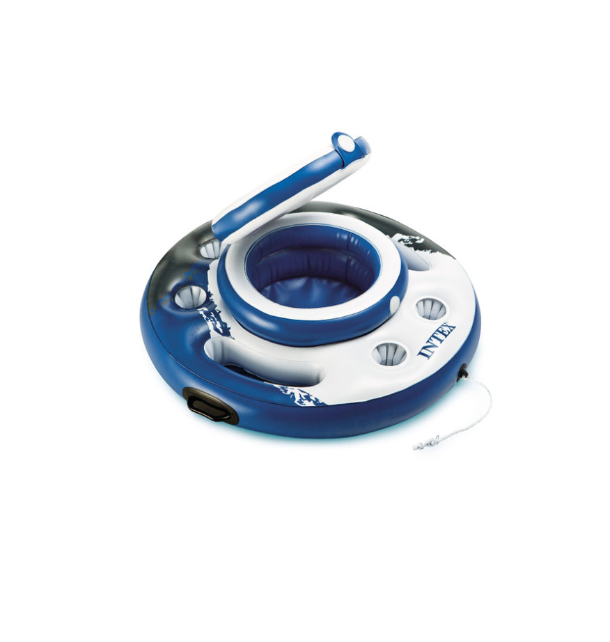No need to get out of the pool for a nice refreshing beverage when you have an Intex Mega Chill! Designed with three air chambers for added safety, five built-in cup holders and two trays, durable handles, and a built-in cooler that holds refreshing beverages and ice, the Mega Chill is a convenient accessory for a refreshing pool experience.