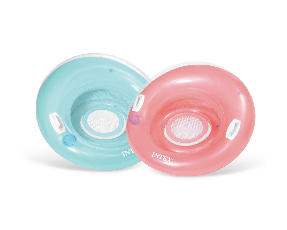 Enjoy floating around at the pool with our Sit 'N Lounge™ assortment. These fun lounges are designed with clear tops and colorful bottoms and two grip handles for stability and a comfortable backrest.