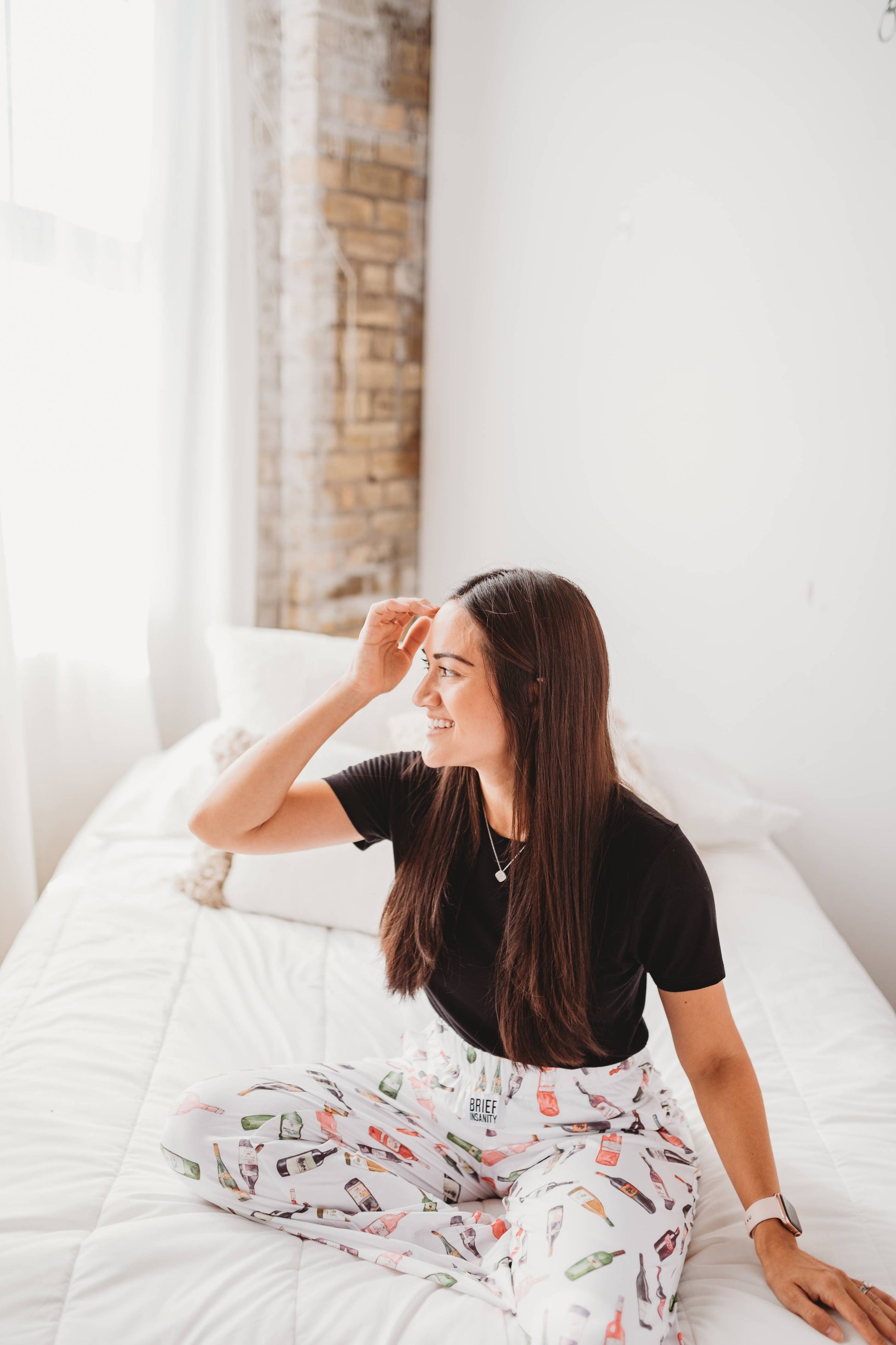 BRIEF INSANITY's Just Screw It Wine lounge pants - the perfect attire for wine lovers looking to relax and unwind in style!