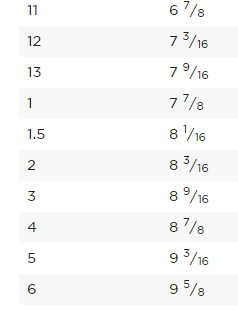 Circumference: 101⁄2 inches (size 12)