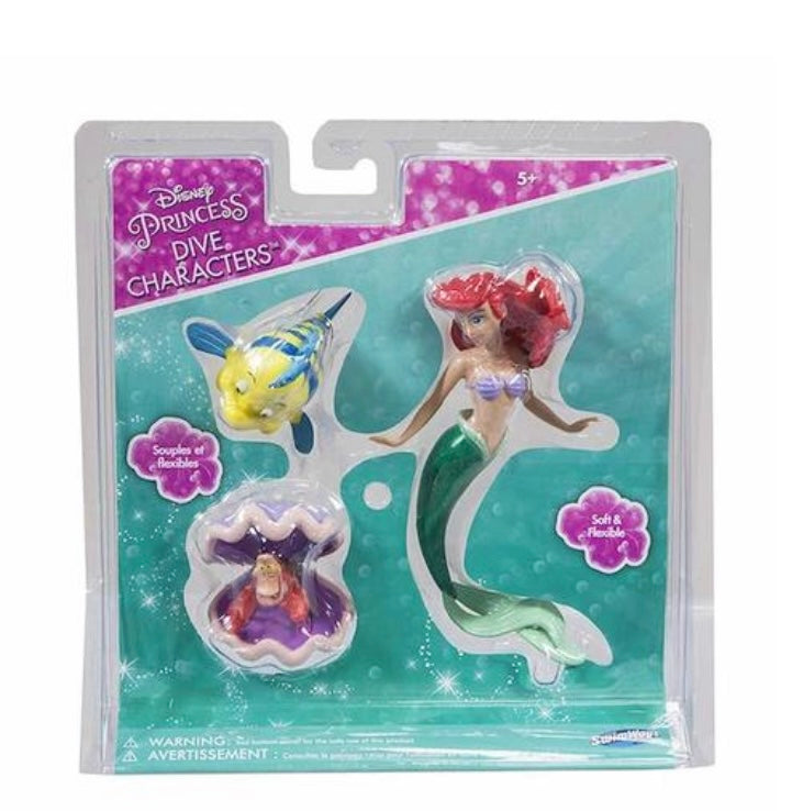 Your mermaids will love to swim along with Disney Princess Ariel Dive Characters from SwimWays! This set of three dive toys features characters from The Little Mermaid. Encourage new swimmers to practice their underwater swimming skills as they swim to retrieve these fun and colorful dive sticks. Includes one each of Ariel, Flounder, and Sebastian characters. Recommended for ages 5 and up.