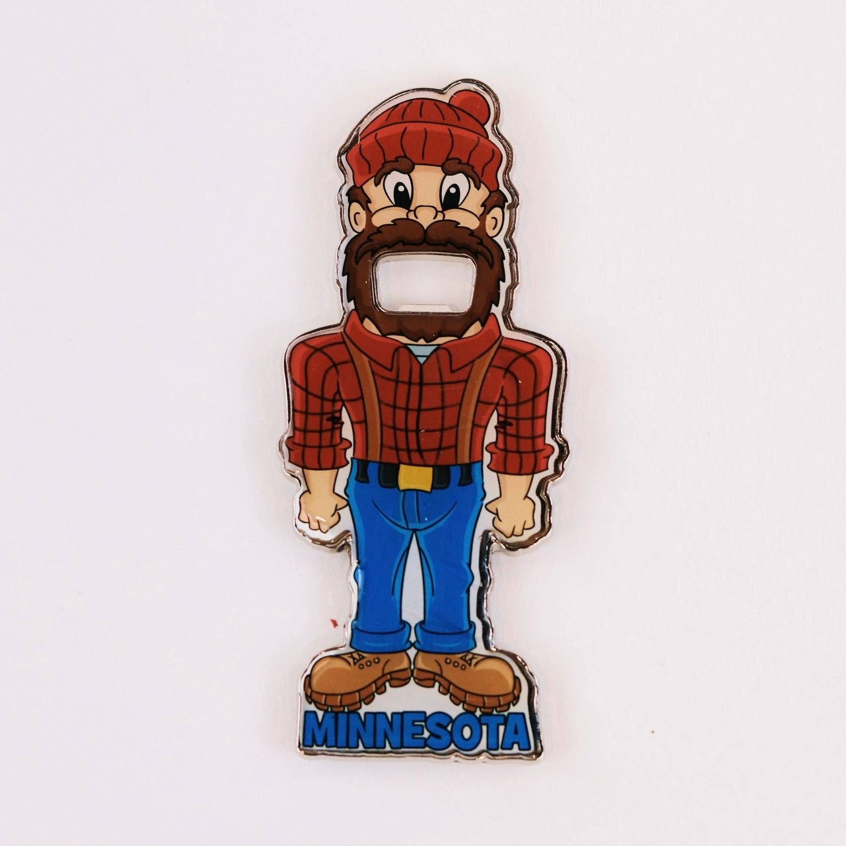 Crafted with high-quality materials, the Paul Bunyan Bottle Opener is built to last. Its sturdy construction ensures durability and provides a reliable grip for opening bottles with ease. The opener is designed with the shape of Paul Bunyan's silhouette, complete with his signature flannel shirt.