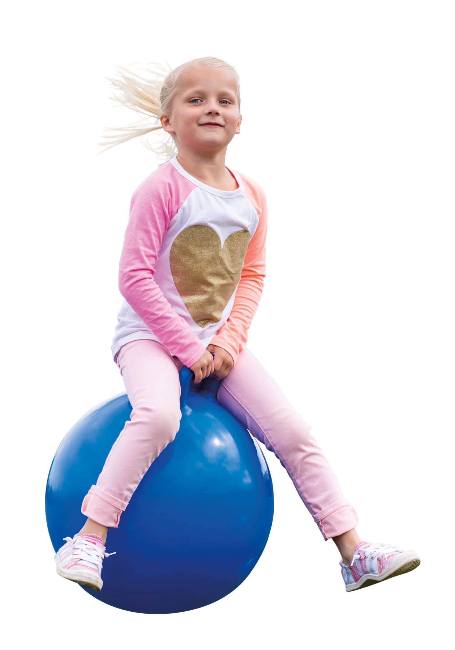 This big handled ball promotes balance and coordination. 18" diameter. Holds up to 175lbs. Includes 9" hand pump. 3yr+