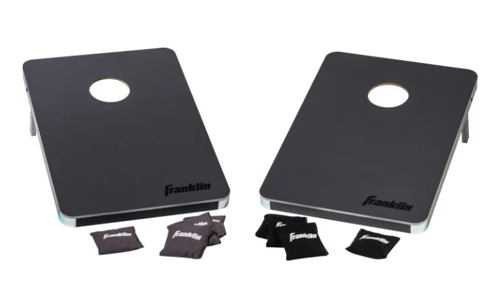 The 36"Cornhole set from Franklin Sports is all you need for an official, sturdy cornhole game that can be quickly assembled (no tools required!) and easily transported! The set includes (2) large targets that measure 36" x 24". Designed with a high quality MDF surface and steel corners, this set is built to last. (8) official size 6" x 6" bean bags are included in the set. Cornhole is a classic outdoor game that can be used on grass, sand or any soft surface! Make sure to include this at your next picnic or backyard BBQ!