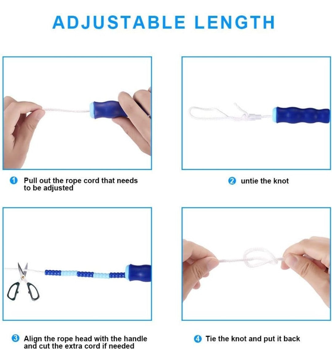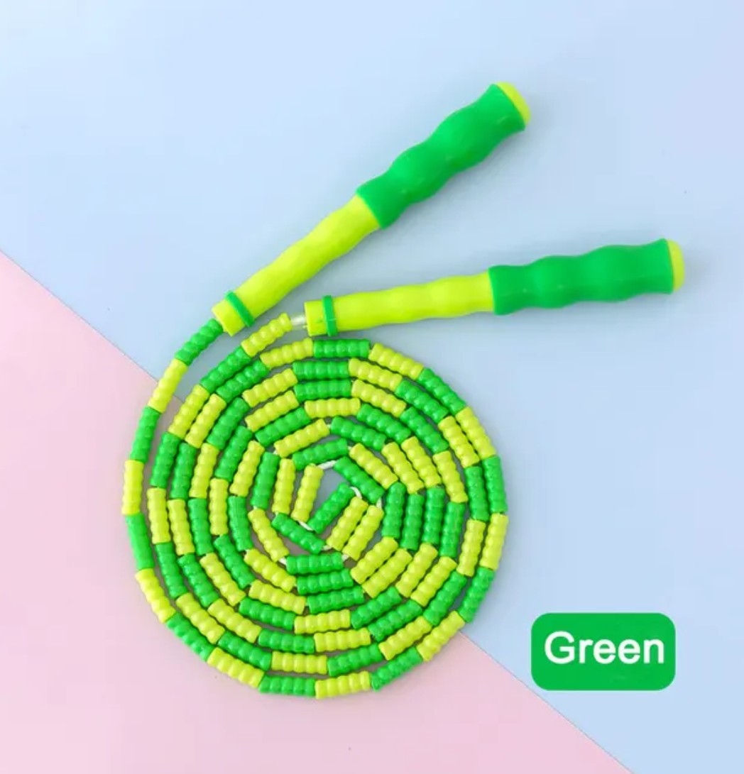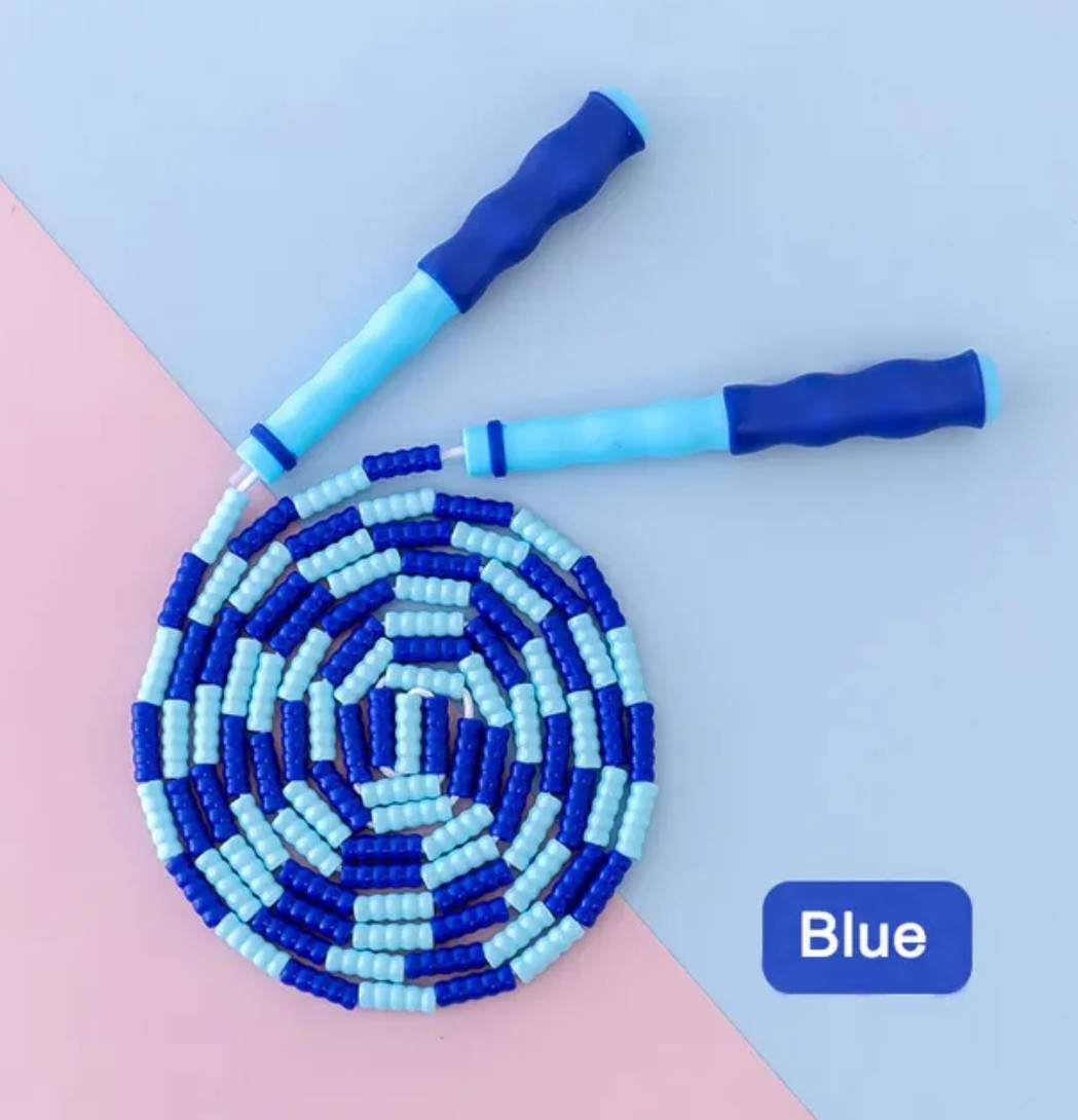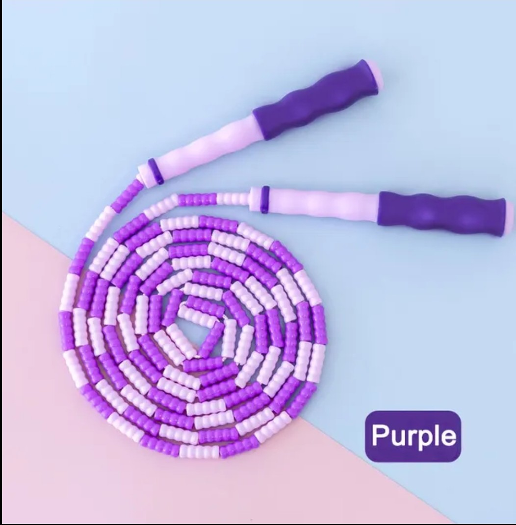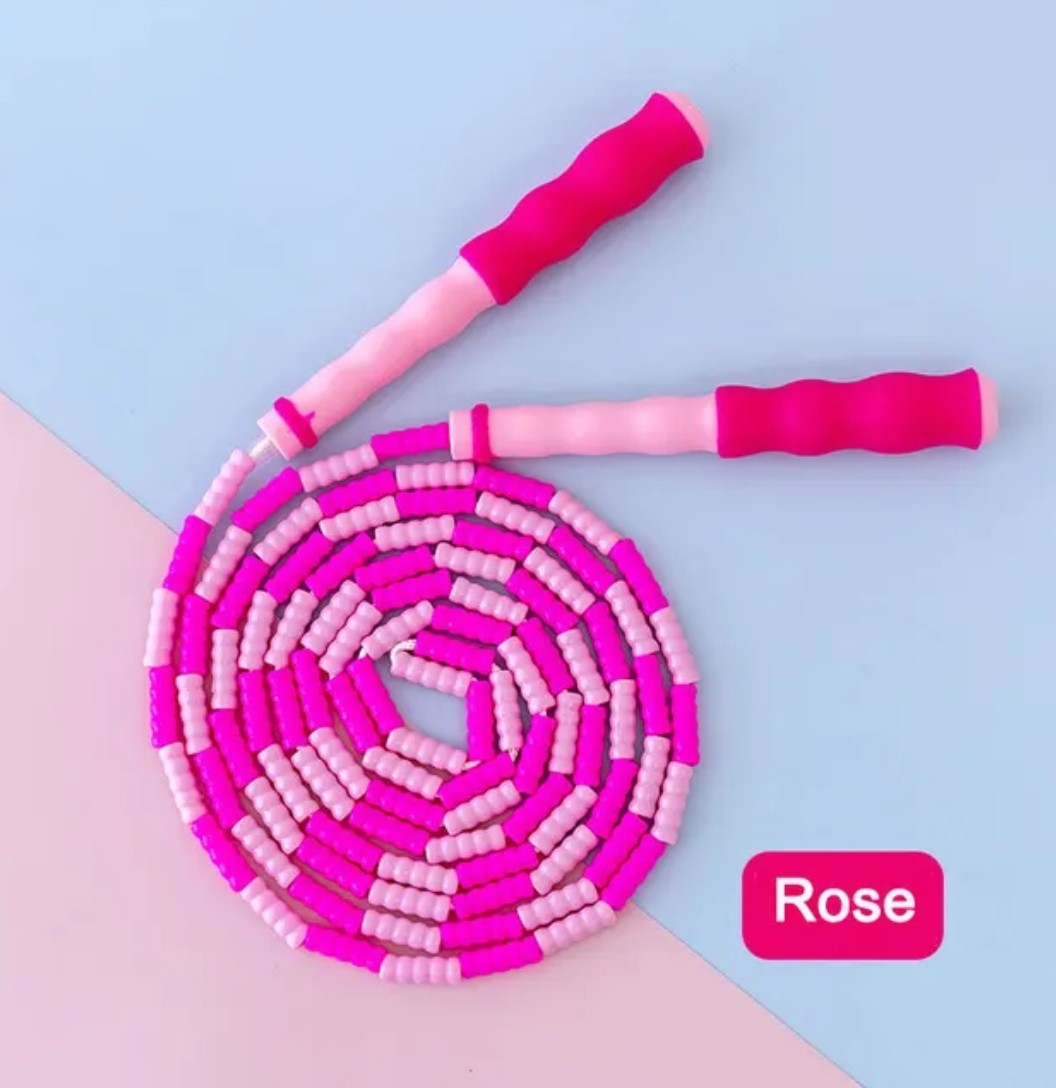 Soft-beaded, Tangle-free skipping rope. Adjustable.